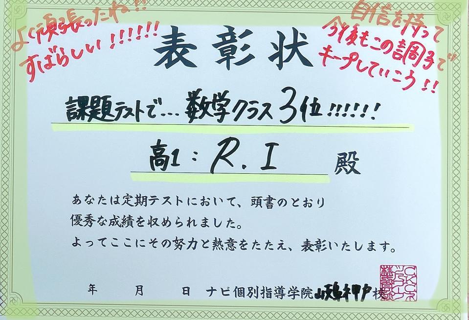 入学してすぐの課題テストで数学(受講教科)クラス3位という優秀な結果を残してくれました!