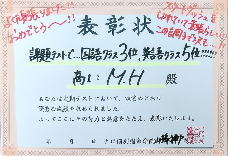 こちらも入学してすぐの課題テストで国語クラス3位、英語(受講教科)クラス5位という優秀な結果を残してくれました!