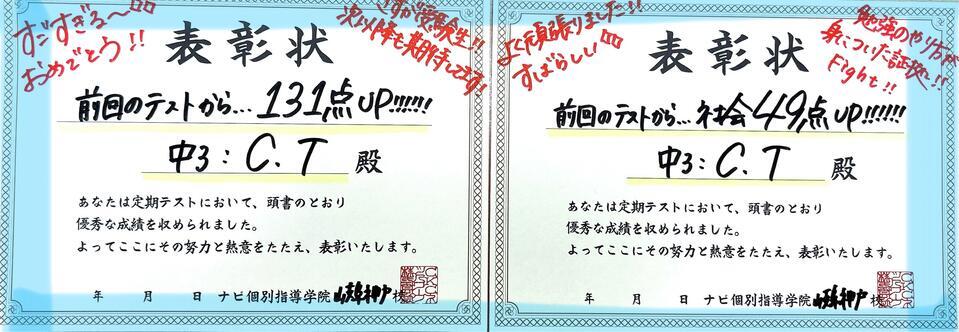 中3生ということもあり、今回のテストの前に志望校を決定してある程度の目標点を定めたからだと思います!