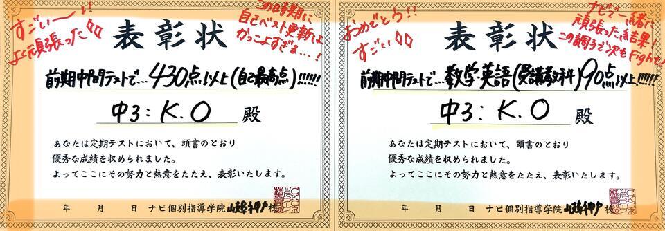 今回もタイトルにある通り、前期中間テストで頑張ってくれた生徒さんをご紹介したいと思います!
