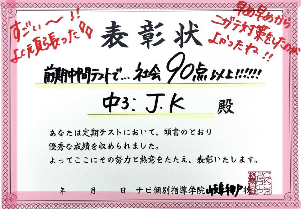この生徒さんはニガテな社会で90点以上という素晴らしい結果を残してくれました!!