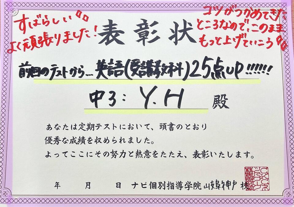 前回のテストから英語(受講教科)25点UPという素晴らしい結果を残してくれました!