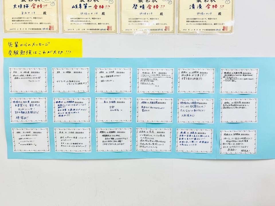 メッセージは教室にも掲示してありますので