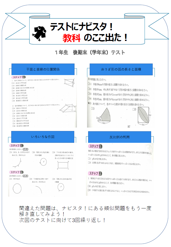 「ナビスタ!」ではテスト頻出の内容で点数が取れるように