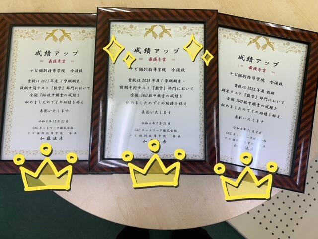 実は、これで3年連続の成績アップ最優秀賞になります。