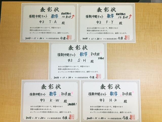 11月上旬~中旬にかけて行われた後期中間テストも、