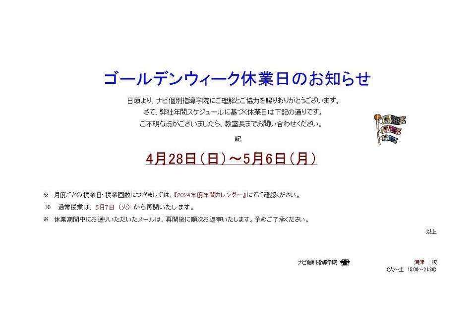 【GW休業日のお知らせ】