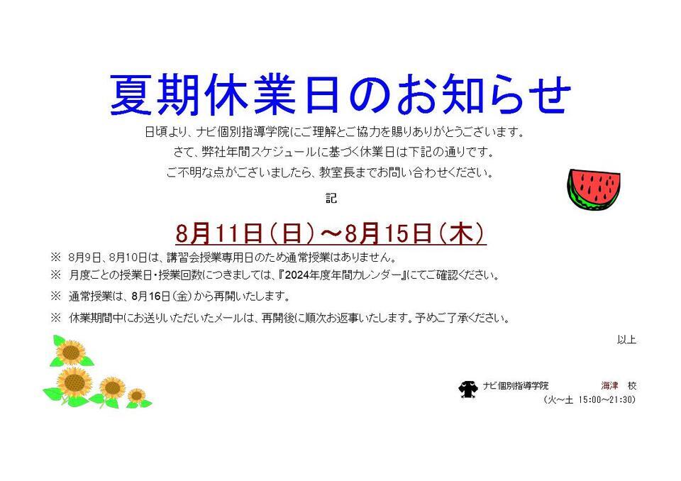 さて、弊社年間スケジュールに基づく休業日は下記の通りです。
