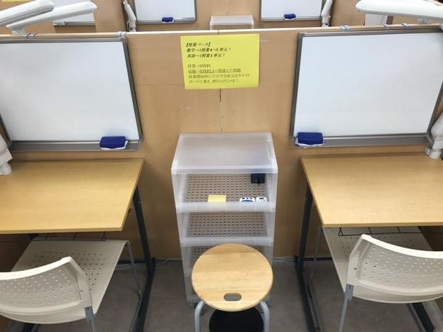 ナビ個別指導学院の授業は、個別の席ごとに設置された自分専用のホワイトボードで解き方や考え方を一緒に確認、それから生徒が問題を解くという「個別授業」スタイルです。