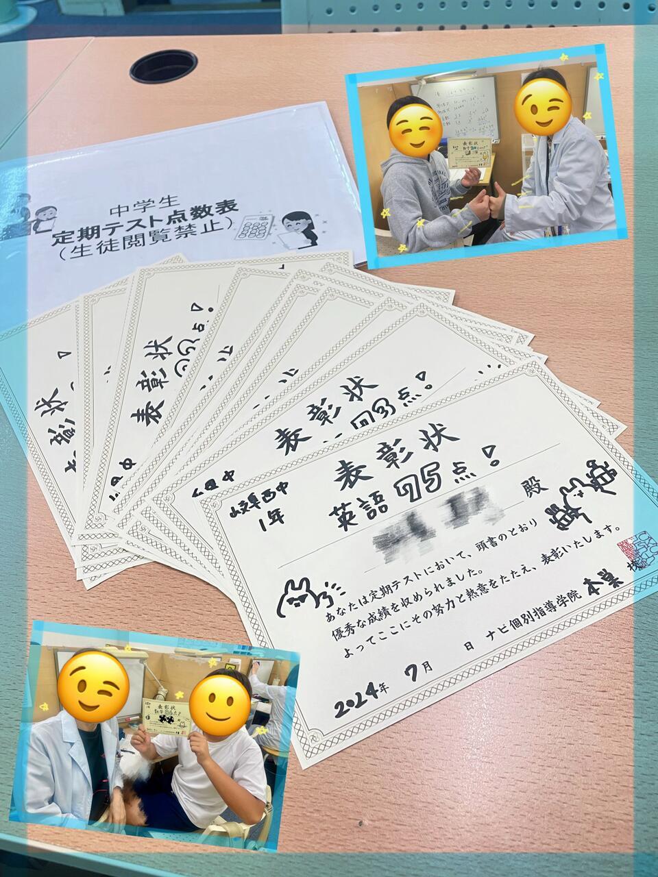 次回の期末テストからは +10点以上でも 表彰状を作成します。