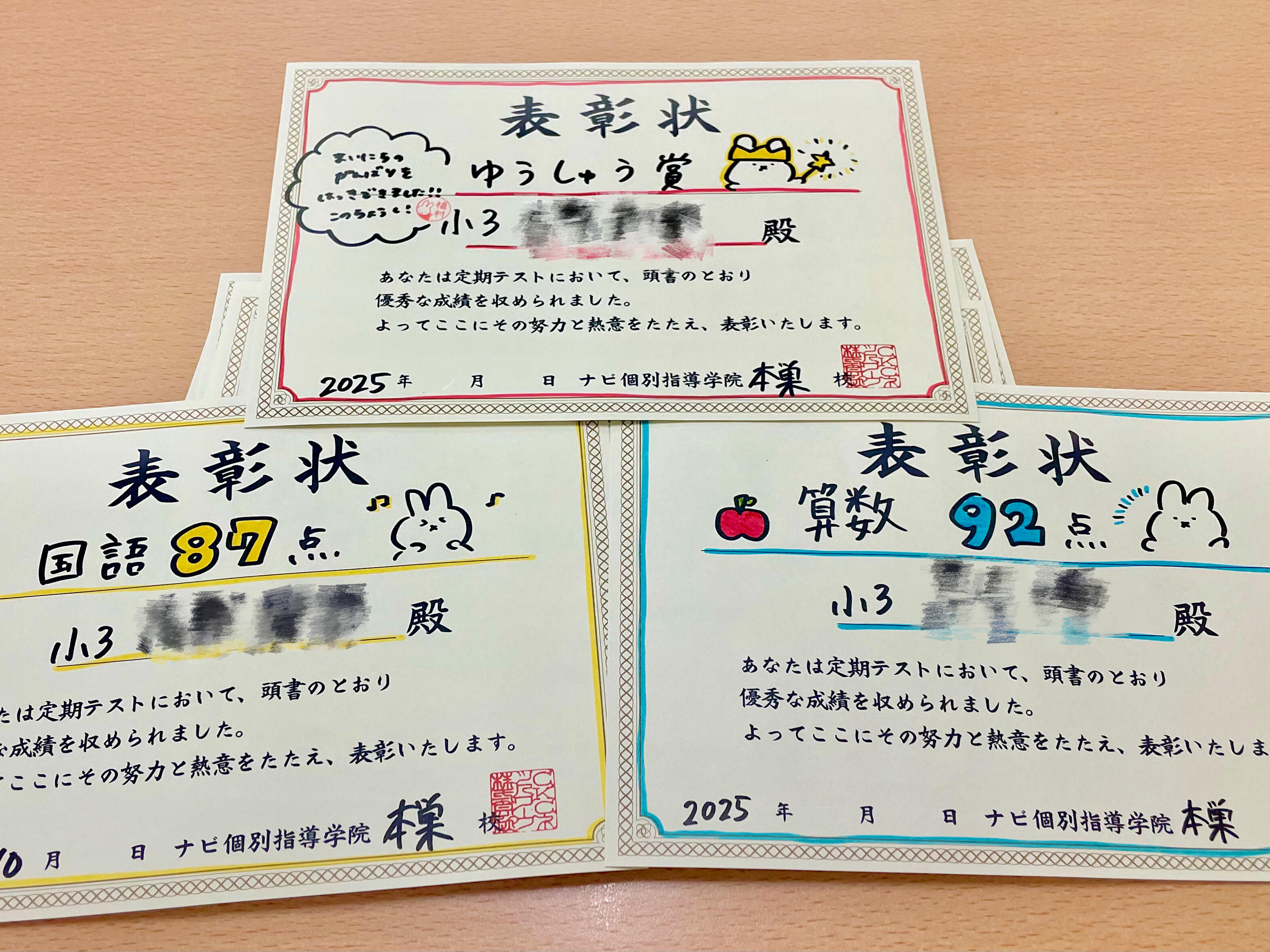 と表彰状をきっかけにやる気を持ってくれる生徒もいます!
