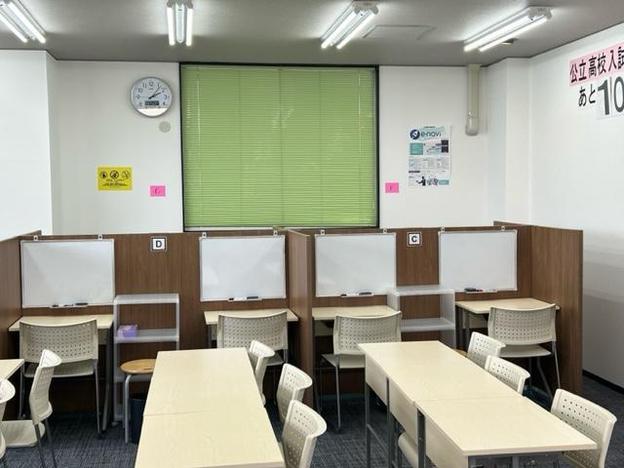 ナビ個別指導学院の授業は、個別の席ごとに設置された自分専用のホワイトボードで解き方や考え方を一緒に確認、それから生徒が問題を解くという「個別授業」スタイルです。