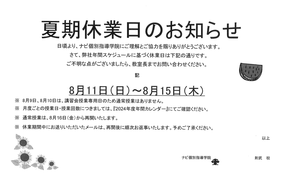 長期休暇もメリハリをつけて、自分の課題に取り組みましょう!