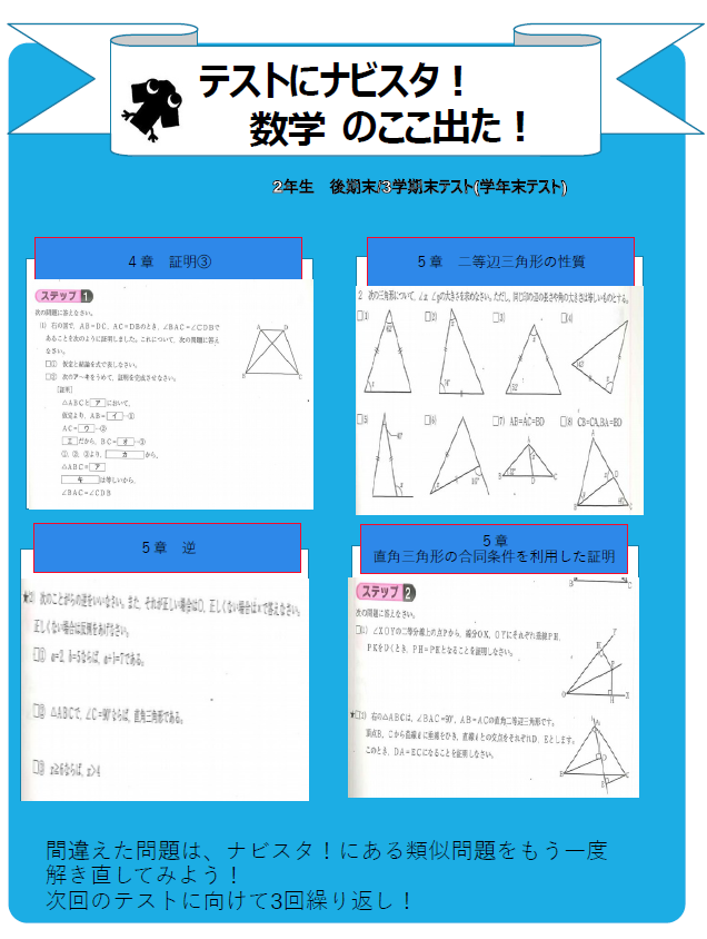 中 1、中 2 の皆さんは現学年で最後の定期テストが迫っています。