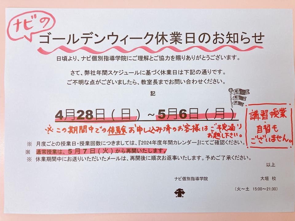 ※期間中、体験授業にお申込みいただいている場合は、ご予定通りお越しください。