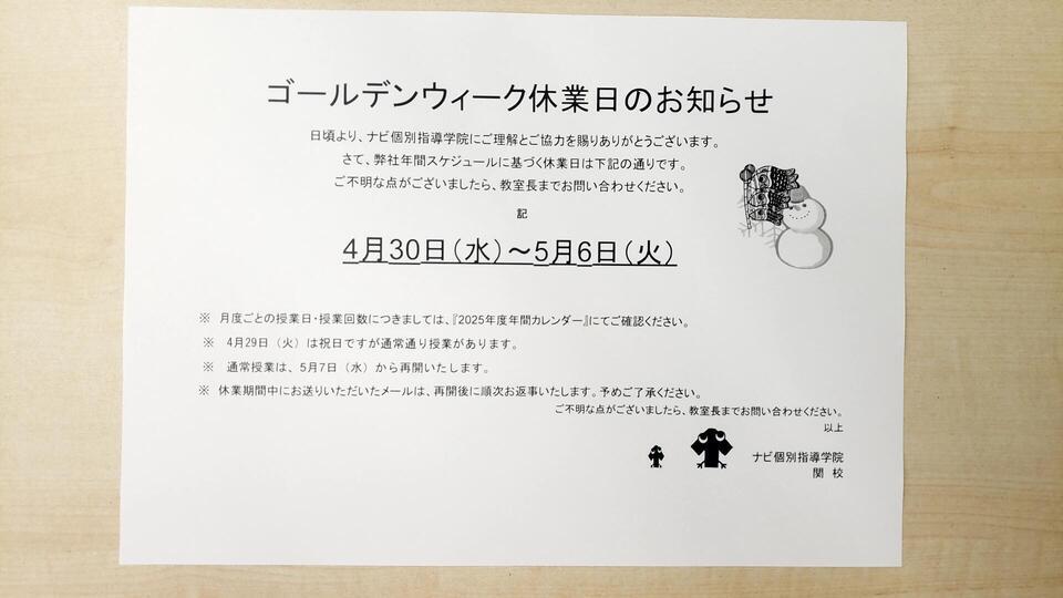 ※休業期間中にお送りいただいたメールは、再開後に順次お返事いたします。予めご了承ください。