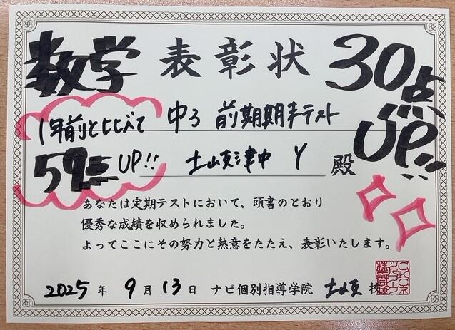土岐津中3年 数学30点UP!! おめでとう!!