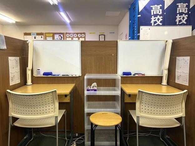 ナビ個別指導学院の授業は、個別の席ごとに設置された自分専用のホワイトボードで解き方や考え方を一緒に確認、それから生徒が問題を解くという「個別授業」スタイルです。