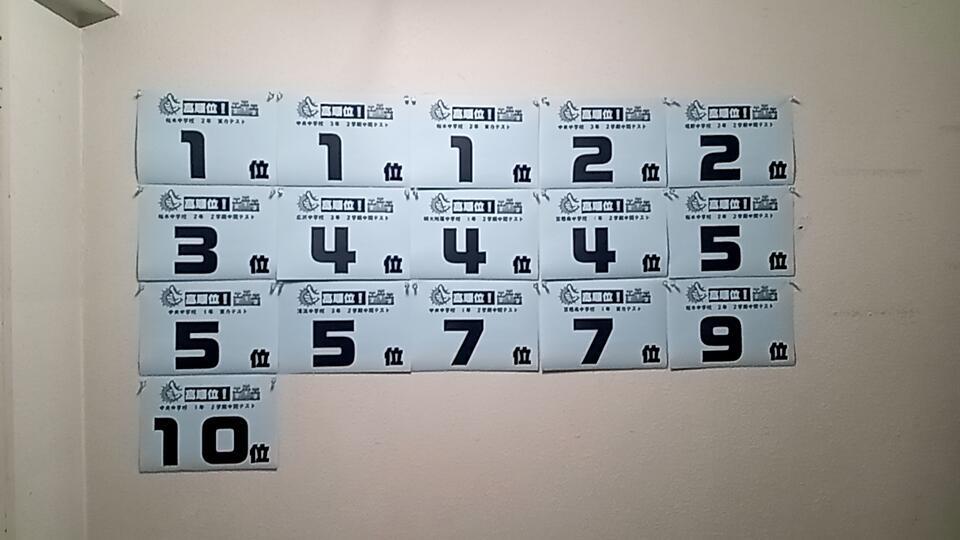 前回のブログでお話した通り、2学期の中間テスト結果を貼り出しいたしました。多くの生徒結果を貼り出せることになってとても嬉しく思っています!中間が終わったのも束の間、生徒達が先週末から3週前にも関わらず、続々と期末テストの範囲表を持って来始めました。私が中高生の時は、テスト範囲が発表されるのは1週間前でしたので、年々発表が早まってきています。ただ、それに合わせてワークの出題範囲も増えてきている印象です。提出も評価に関わりますので、計画的にワークを終わらせるようにしていきましょう!