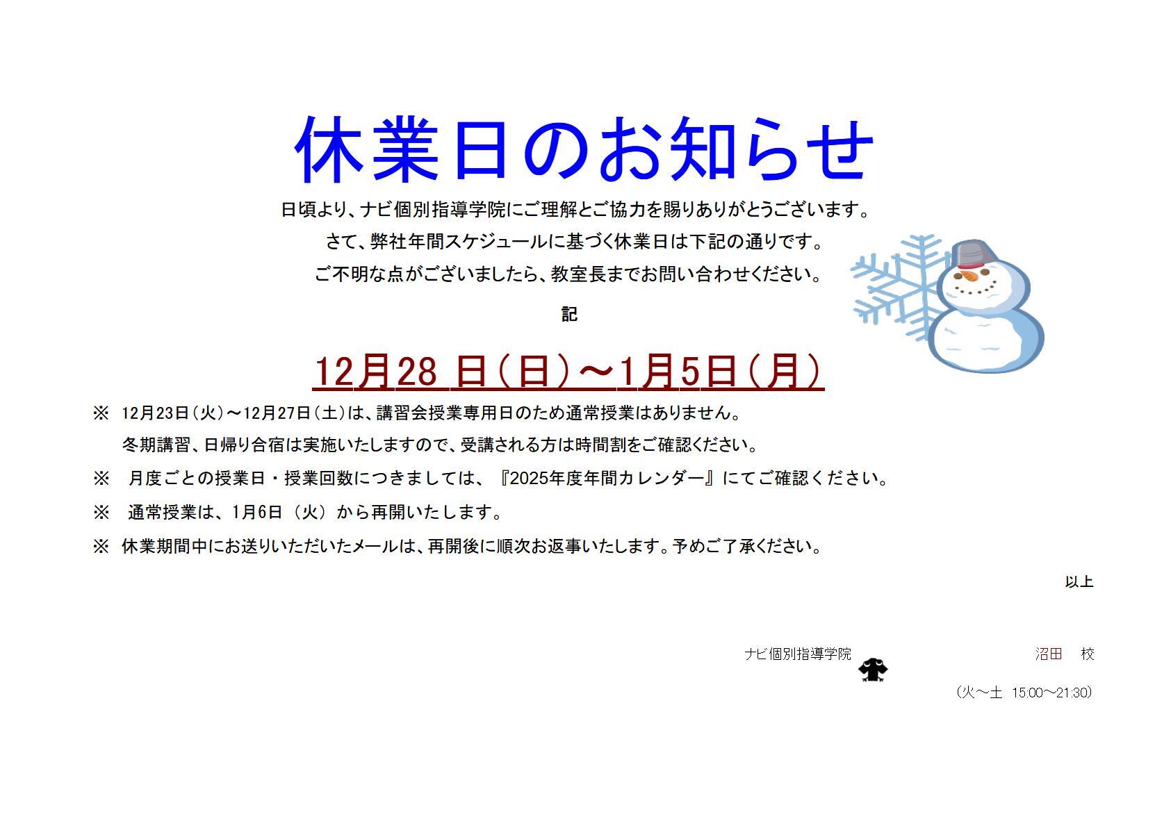 冬期講習・冬期日帰り合宿、専用期間となります。