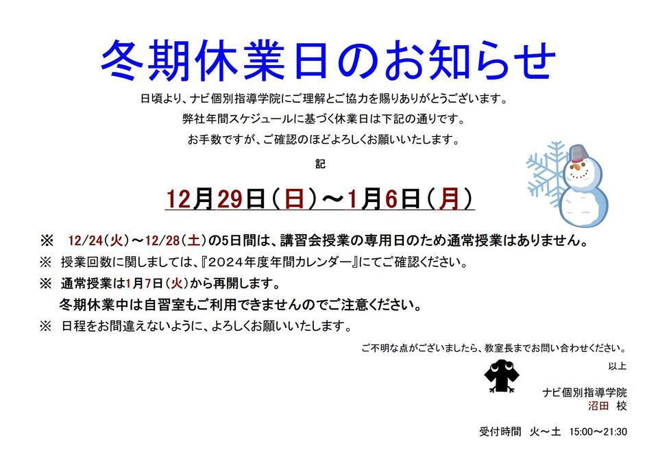 休業期間中は自習室もご利用できませんので、ご注意ください。
