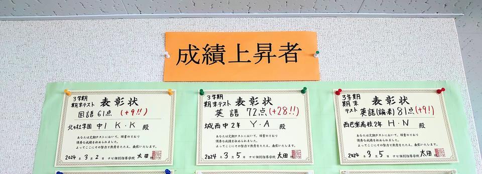 ・ 城西中 中2 Y・Aさん 英語 72点(+28点!)