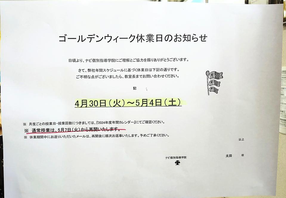来週からのナビ個別指導学院 太田校の