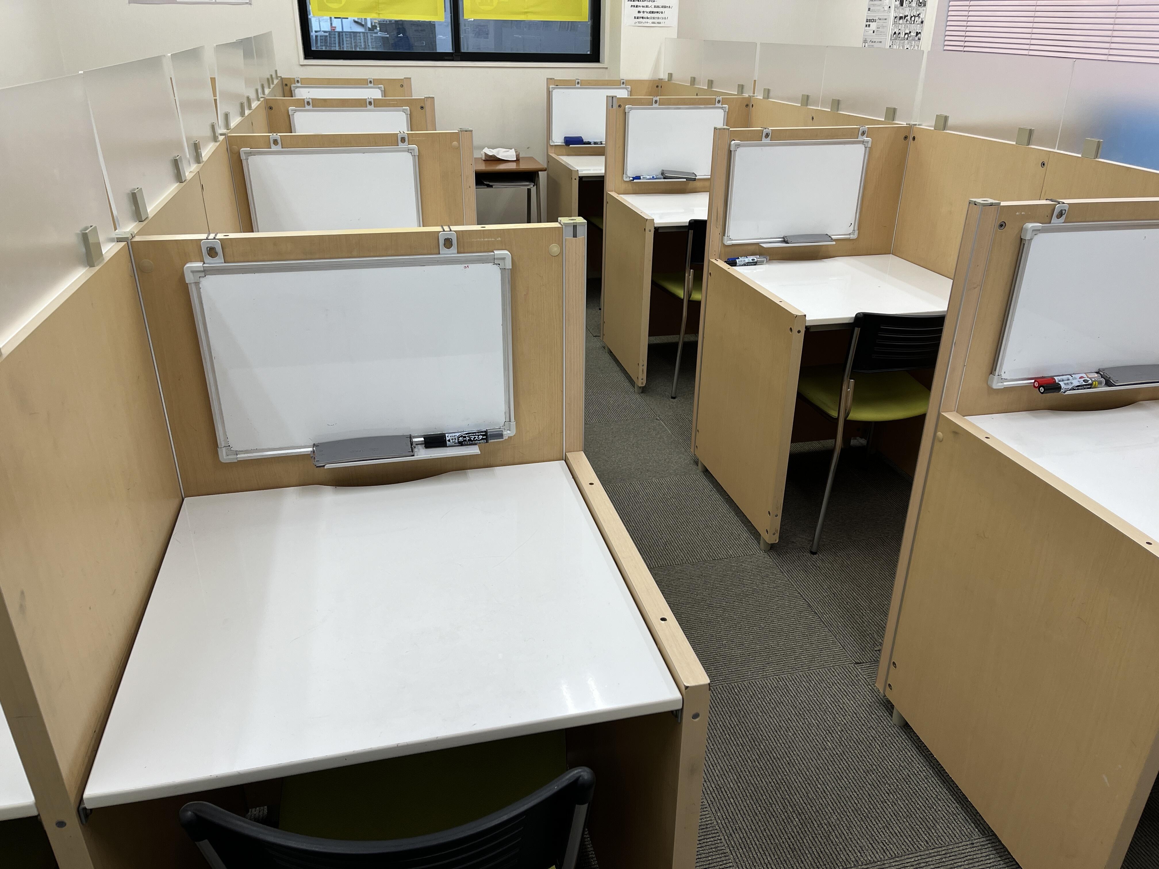 席ごとのホワイトボードで考え方を確認してから手を動かすので、「分かったつもり」を減らしやすい設計です。ほめる指導で、手が止まった所からやり直します。自習室の活用もOK。オリジナルテキストも使います。