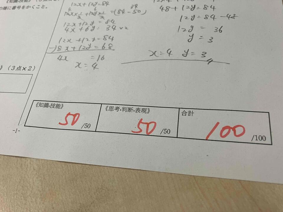 数学で100点を取ってくれた生徒がいました!!!