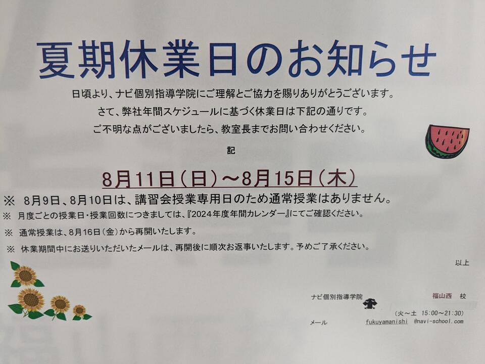 夏季休業のお知らせです。