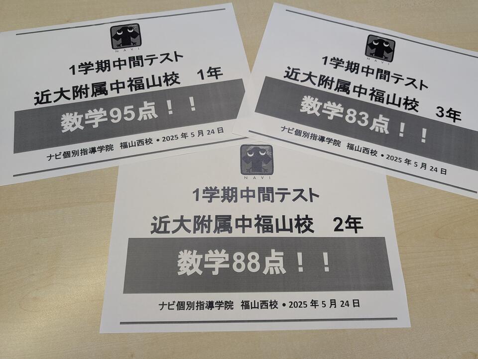 私立である、近大附属中は1学期中間テストがありました!