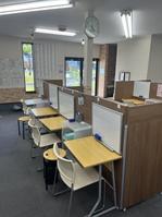 ナビ個別指導学院の授業は、個別の席ごとに設置された自分専用のホワイトボードで解き方や考え方を一緒に確認、それから生徒が問題を解くという「個別授業」スタイルです。