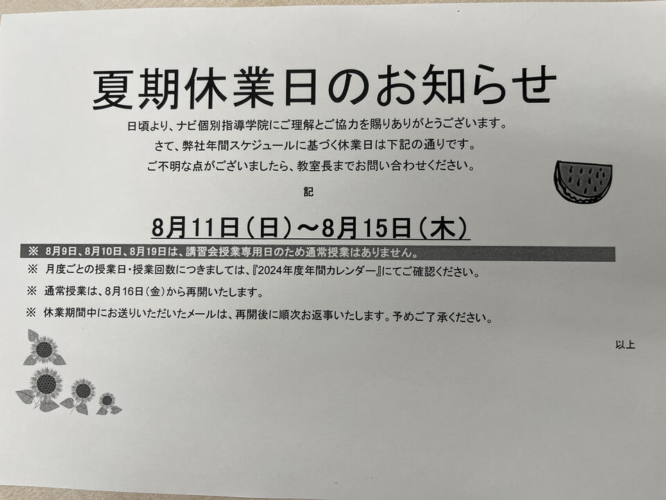 日頃より、ナビ個別指導学院にご理解とご協力を賜りありがとうございます。