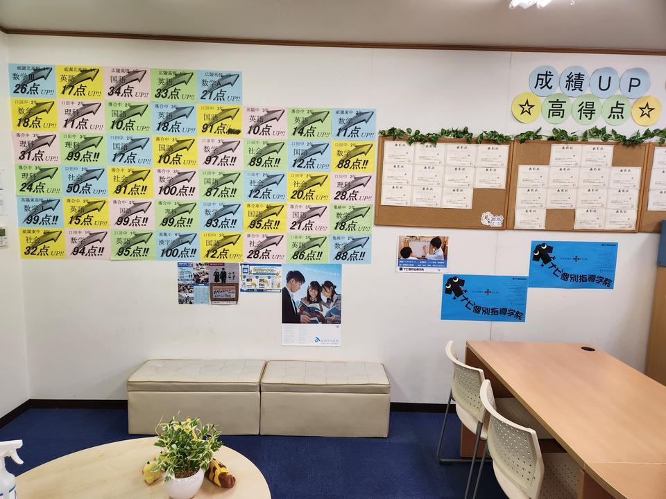マックの向い、セブンの隣、から揚げカリッジュの2階に開校している個別の学習塾です。