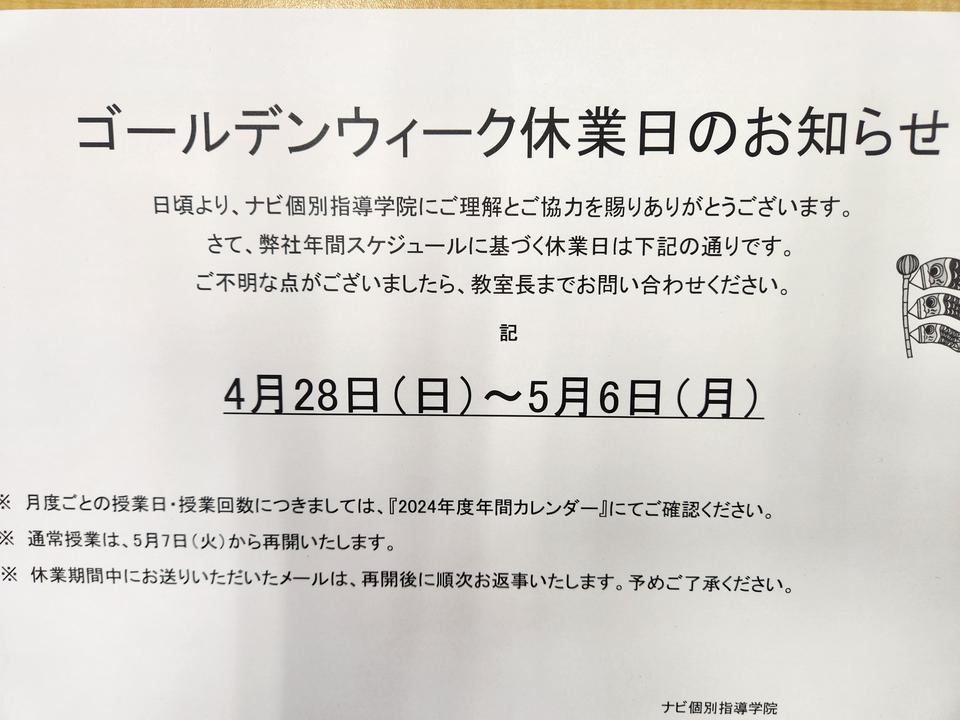 ナビ高陽校の、ゴールデンウイークの休業日は、
