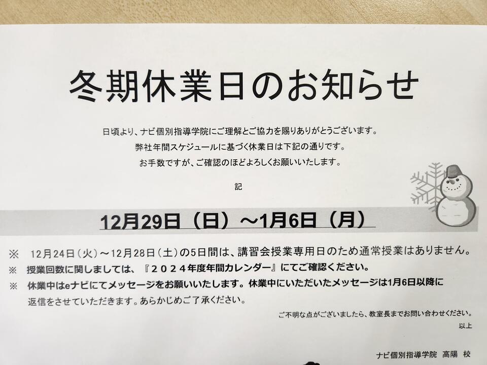 ナビ高陽校の冬期休業は、