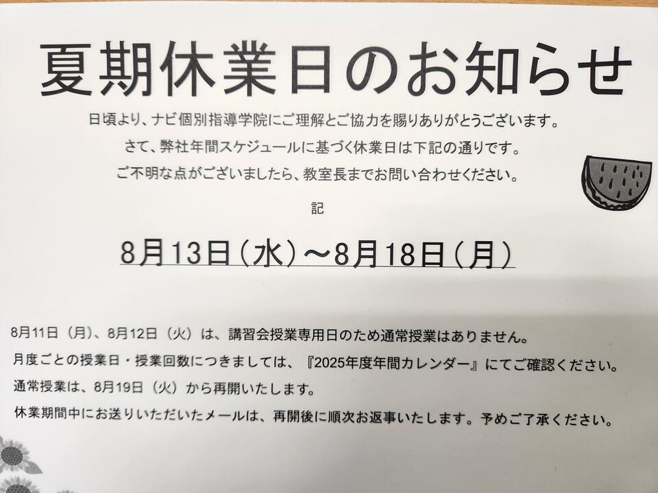 日頃より、ナビ個別指導学院にご理解とご協力を賜りありがとうございます。