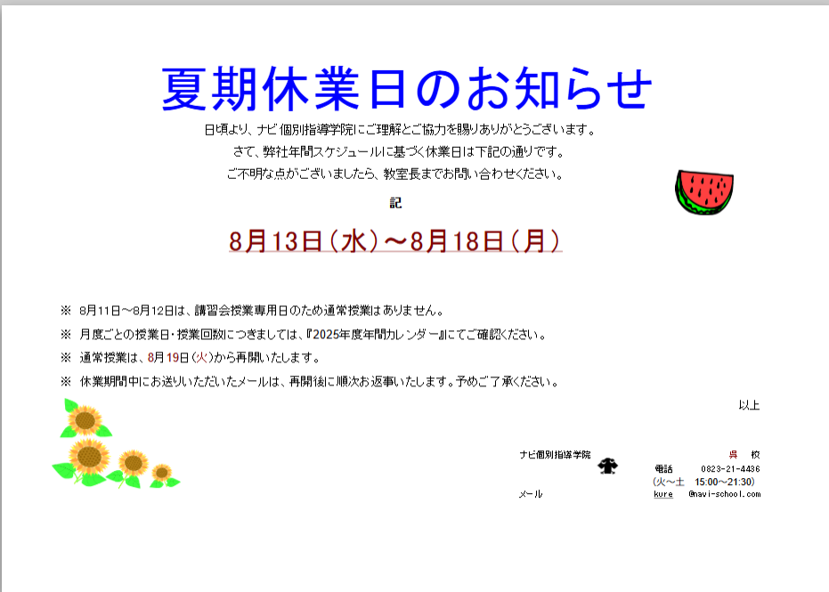ナビ個別指導学院ではお子様の学年や学習状況に合わせた指導を行っております。
