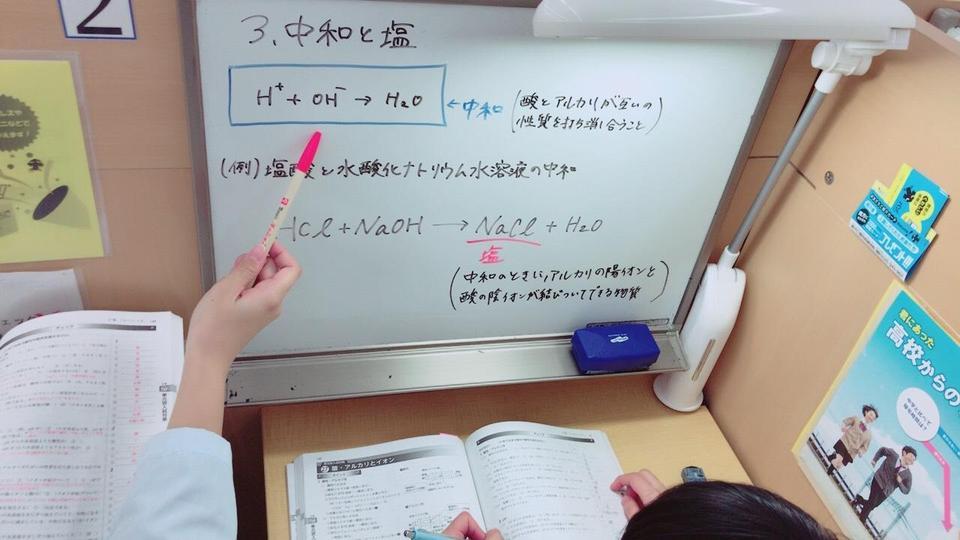 ナビ個別指導学院の授業は、個別の席ごとに設置された自分専用のホワイトボードで解き方や考え方を一緒に確認、それから生徒が問題を解くという「個別授業」スタイルです。