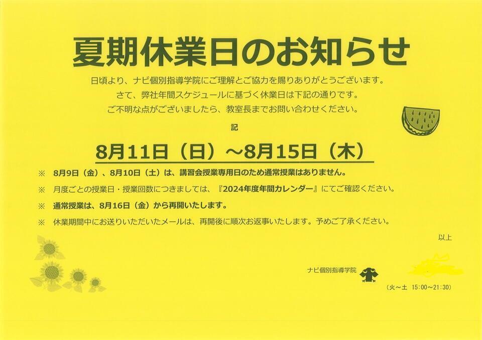 日頃より、ナビ個別指導学院にご理解とご協力を賜りありがとうございます。