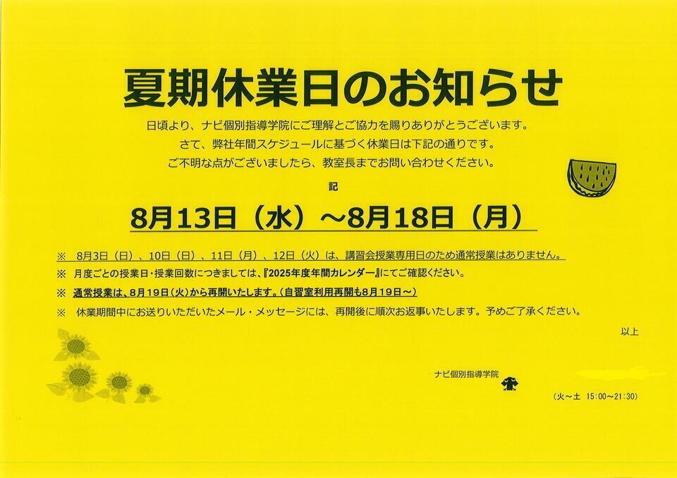 日頃より、ナビ個別指導学院にご理解とご協力を賜りありがとうございます。