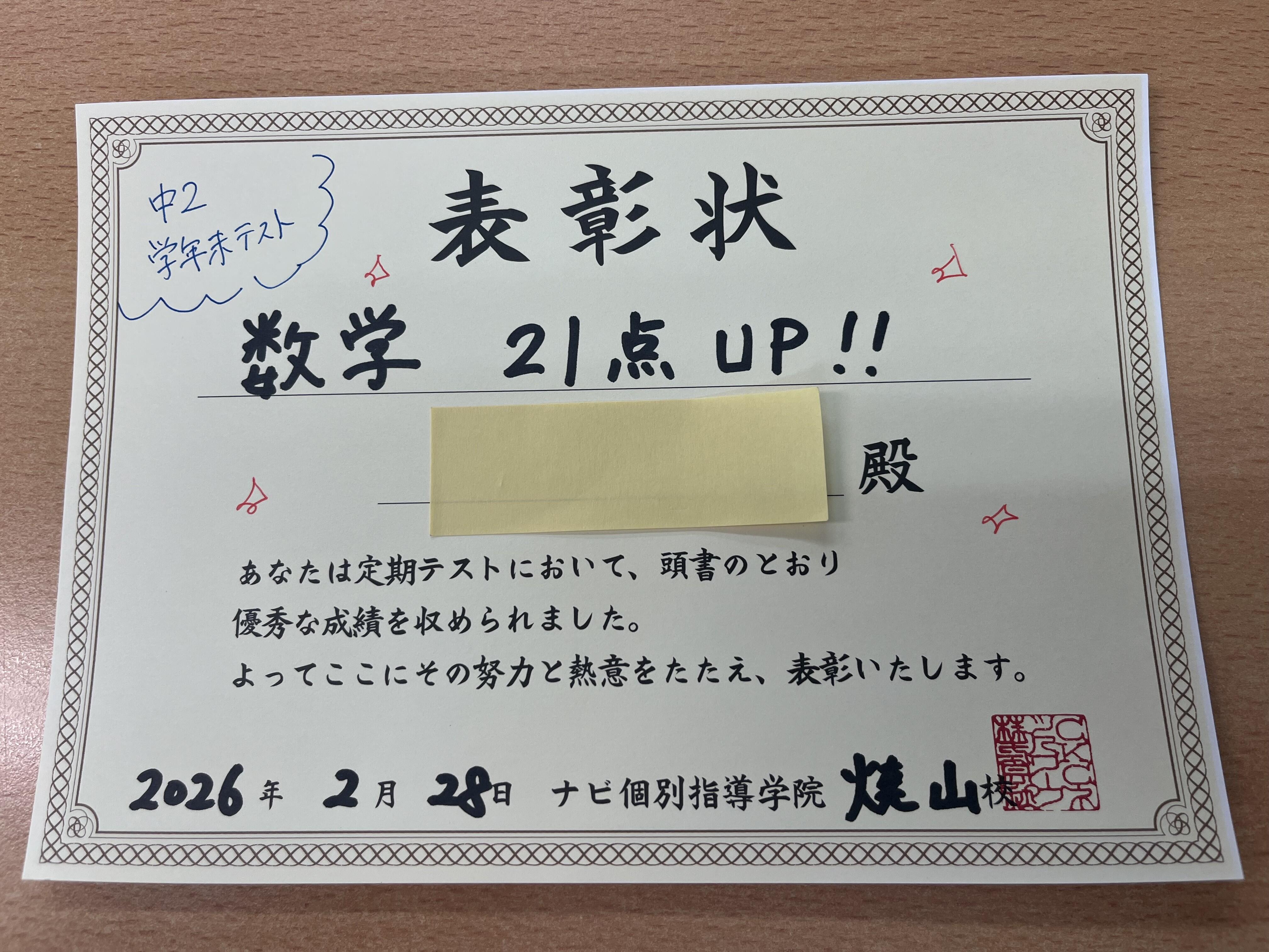 今回はテストまでのスケジュールを一緒に計画し、それをしっかりと実行してくれました!
