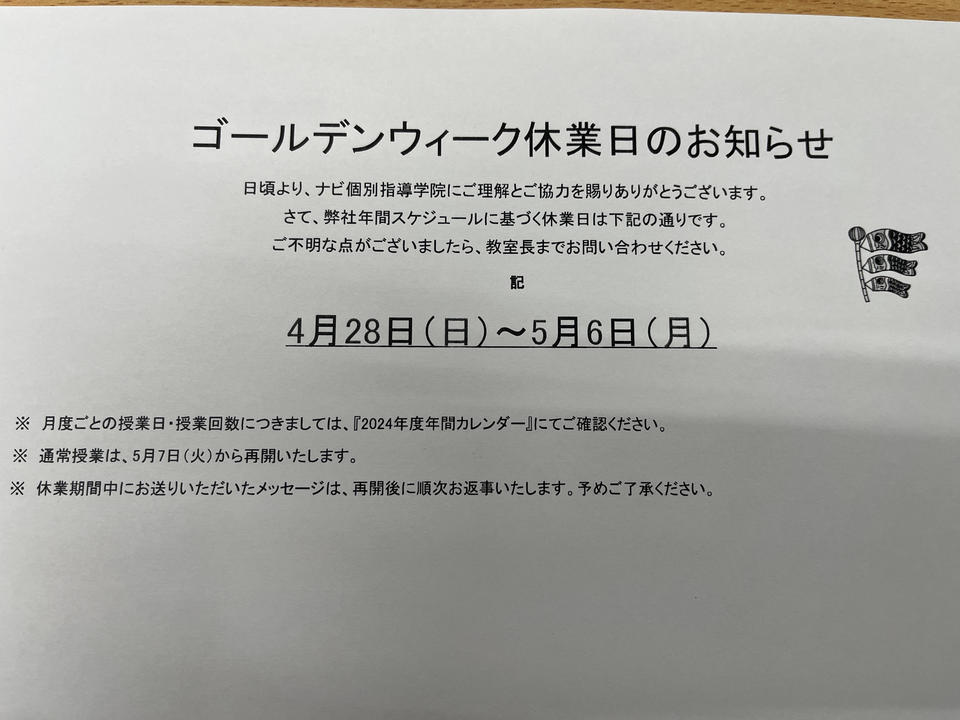 日頃より、ナビ個別指導学院にご理解とご協力を賜りありがとうございます。