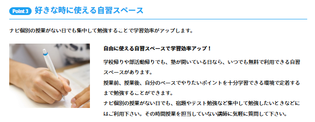 ナビ個別指導学院ではお子様の学年や学習状況に合わせた指導を行っております。