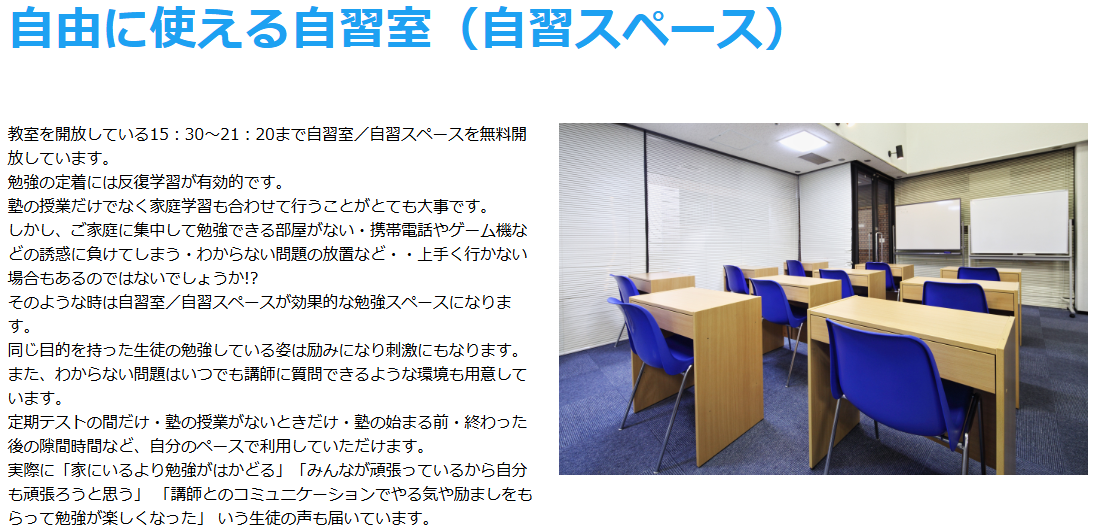 ナビ個別では自習室を開放しており、質問対応をしています。