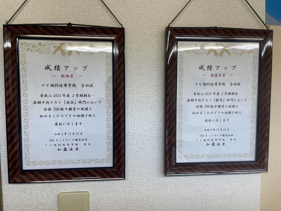 宝殿校では、数学の「優秀賞」や「敢闘賞」ばかりだったのですが