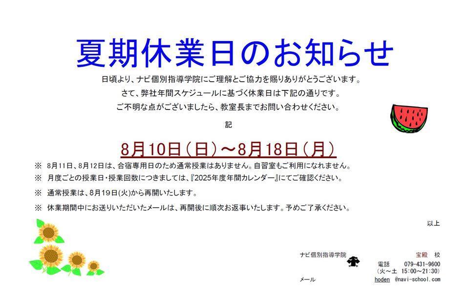 お休み明けに生徒たちの楽しいお土産話をお待ちしております。