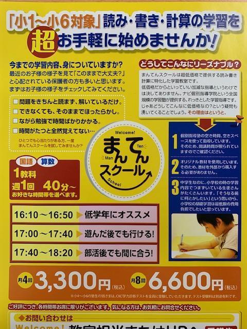 本日は小学生さん対象の『まんてんスクール』についてご案内いたします。