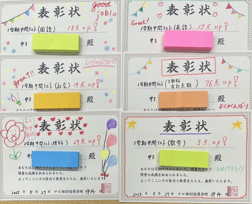 中間テストの嬉しい結果のお知らせも引き続き入ってきてますので、一部お伝えさせて頂きます。