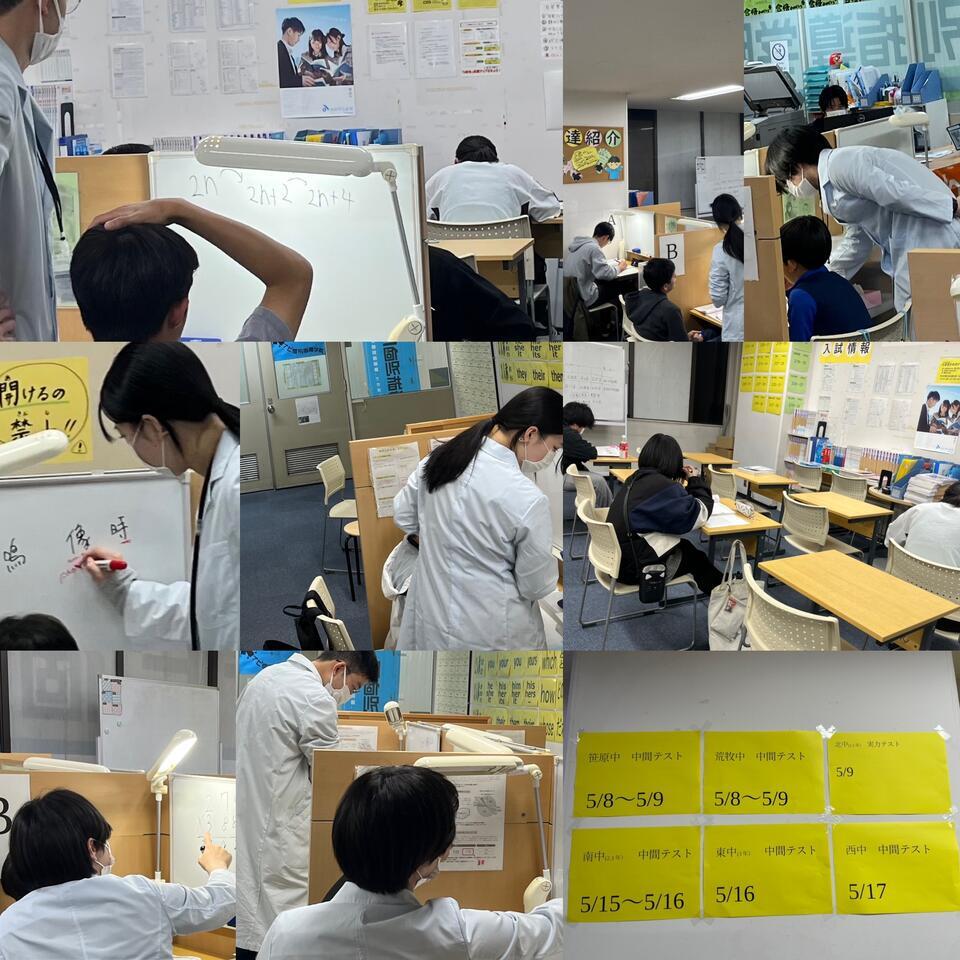 ですから今回中間テストがない北中の1年生•東中の1.2年生•南中の1年生の皆さんも、新学期が始まった今だからこそ、テスト勉強する『練習』が必要になります。